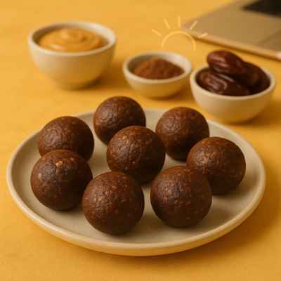 Zblenduj lub zagnieć wszystkie składniki. Uformuj kulki i włóż do lodówki. Idealna przekąska na wynos albo zdrowy deser bez pieczenia!