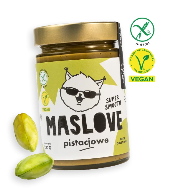 Ale w Maslove idziemy o krok dalej – oferujemy dwa warianty tego samego produktu, by każdy mógł dobrać coś dla siebie. Oba mają 100% prażonych pistacji, ale różnią się konsystencją.