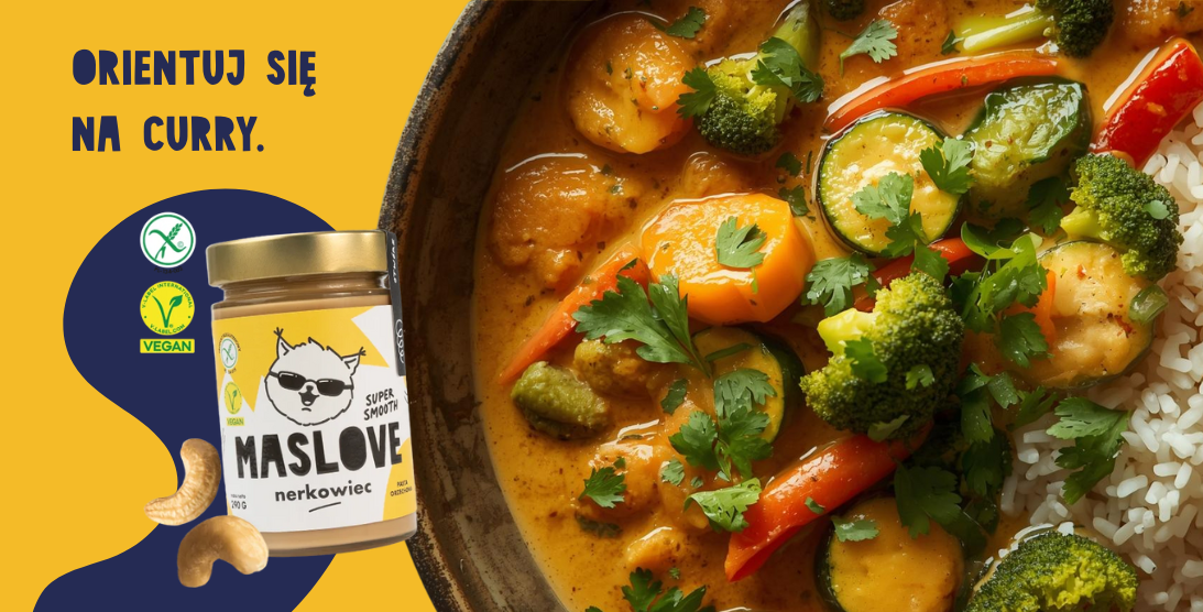 Odkryj kremowe, aromatyczne warzywne curry z nutą masła z nerkowców Maslove – idealne na szybki, zdrowy obiad, który zachwyci całą rodzinę! 🌱🥕
